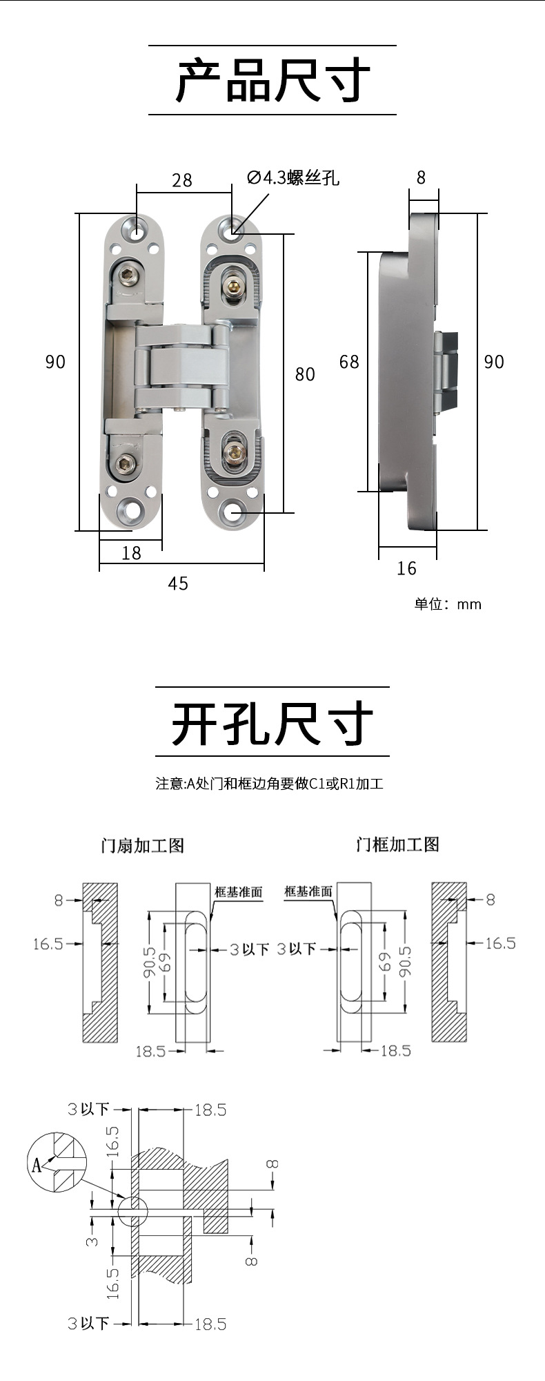 RCH-15A 輕型木門三維可調(diào)暗鉸